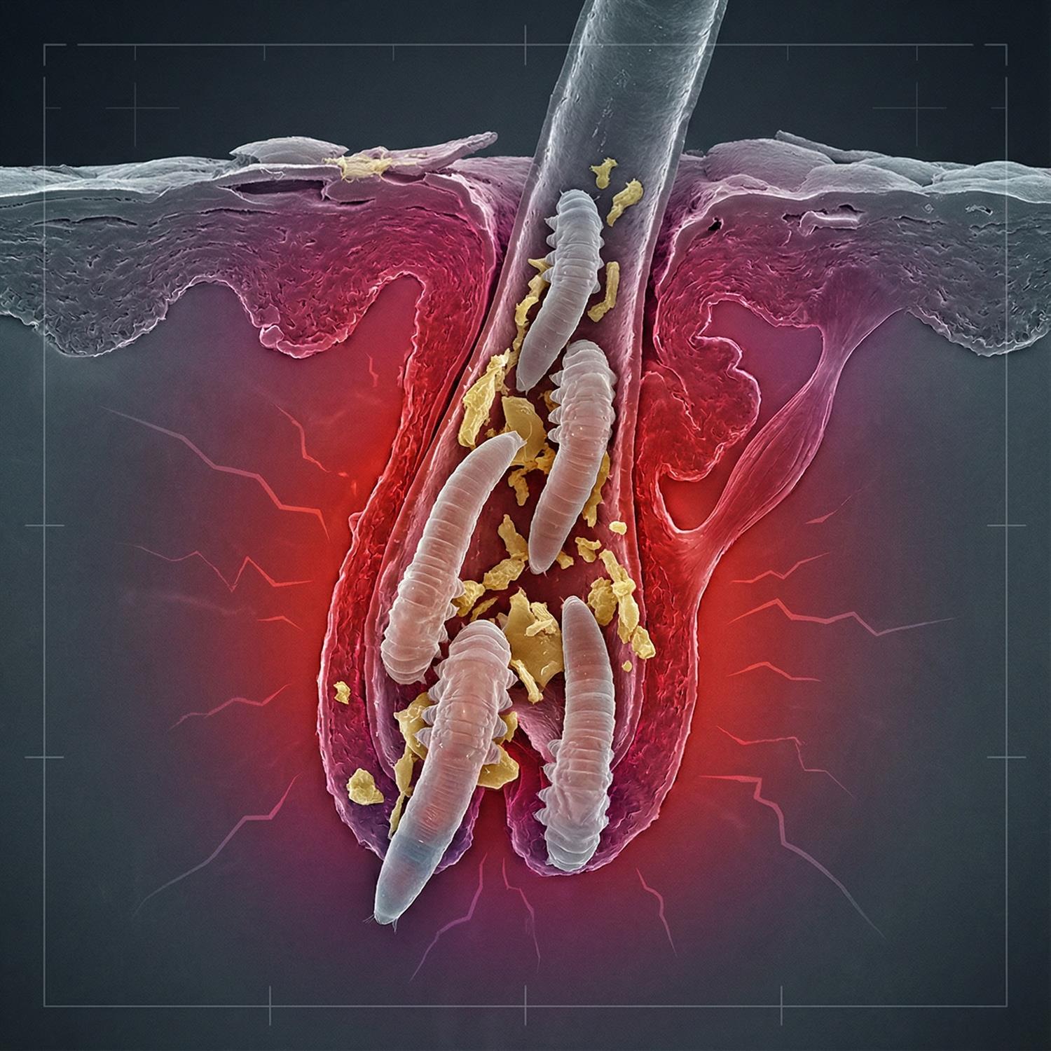Da ngứa ngáy châm chích (đặc biệt về đêm do Demodex hoạt động).